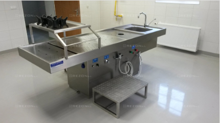 Stół przeznaczony jest do wykonywania sekcji zwłok w Szpitalach, Zakładach Medycyny Sądowej oraz jednostkach niepublicznych. Konstrukcja oraz wyposażenie stołu gwarantuje możliwość przeprowadzenia sekcji w pełnym zakresie. Stół wykonany jest z wysokogatunkowej stali nierdzewnej kwasoodpornej ozn. 1.4301 wg europejskiej normy EN 10088.