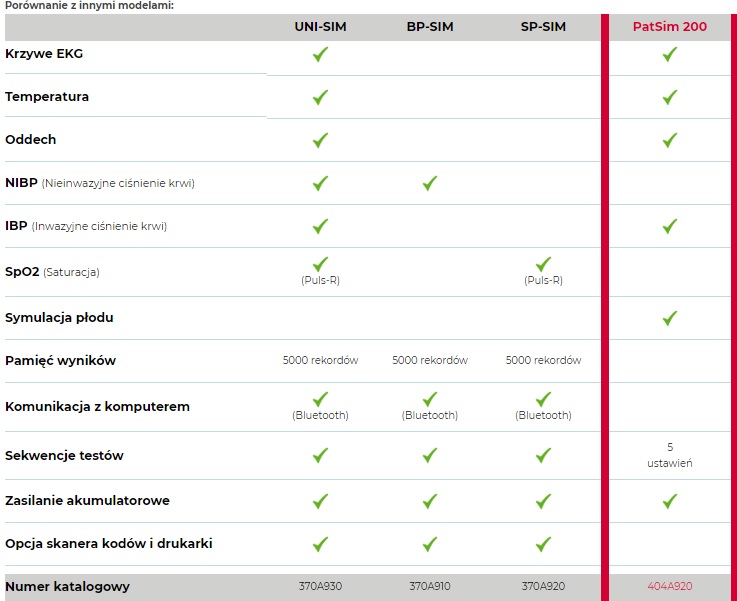 RIGEL PATSIM 200 to niewielki symulator EKG, IBP (ciśnienia inwazyjnego), temperatury i oddechu. Stworzony do błyskawicznych testów. Inaczej niż inne symulatory posiada przycisk przywołania najczęściej używanych symulacji. Koniec z mozolnym poszukiwaniem właściwej funkcji. Jedną z bardziej unikalnych funkcji jest możliwość zapisania w pamięci do 5 najczęściej stosowanych symulacji i szybkiego ich wywołania. Wystarczą 3 kliknięcia. Symulator sam w sobie jest kompaktowy, lekki i wyposażony w duży kolorowy wyświetlacz o wysokim kontraście i niskiej luminancji co daje doskonały odczyt nawet przy słabym oświetleniu. Do tych wszystkich zalet dodamy jeszcze standardowe adaptery EKG dołączone do symulatora i złącza DIN dzięki czemu zamiana Twojego aktualnego symulatora na Rigel PatSim 200 nie pociągnie za sobą dodatkowych kosztów. Nasz symulator jest zgodny z większością przewodów do symulacji IBP i temperatury, które już masz.