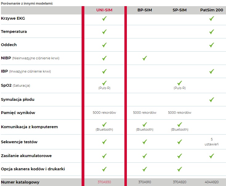 RIGEL UNI-SIM to pierwszy zintegrowany w jednym urządzeniu symulator funkcji życiowych pacjenta. Potrafi generować aż sześć różnych sygnałów: NIBP (nieinwazyjne ciśnienie krwi) EKG, Oddech, SpO2 (saturacja), IBP (inwazyjne ciśnienie krwi) i Temperatura. Wszystkie sygnały są ze sobą zsynchronizowane i umożliwiają pełną diagnostykę monitorów pacjenta. Dzięki zastosowaniu tego symulatora znacząco skraca się czas potrzebny do prawidłowego wykonania wszystkich niezbędnych testów. Możliwość jego dowolnego programowania daje nam nieograniczone możliwości w testowaniu i dopasowaniu symulacji do każdego rodzaju monitora pacjenta dowolnego producenta. Tak jak większość naszych rozwiązań posiada polskie menu, wbudowaną klawiaturę, pamięć wyników oraz technologię Bluetooth. To prawdziwa rewolucja w inżynierii biomedycznej.