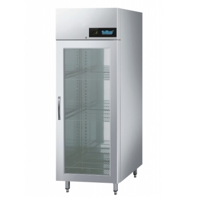 Szafa mroźnicza z rusztami 530x420 mm przystosowana do GN 1/1, z wymuszonym obiegiem powietrza, z automat. odszranianiem i odparowaniem kondensatu gorącym gazem, z regulacją z wyświetlaczem cyfrowym. Agregat w formie monobloku umieszczony na górze urządzenia. Centralne chłodzenie z odpływem kondensatu.
