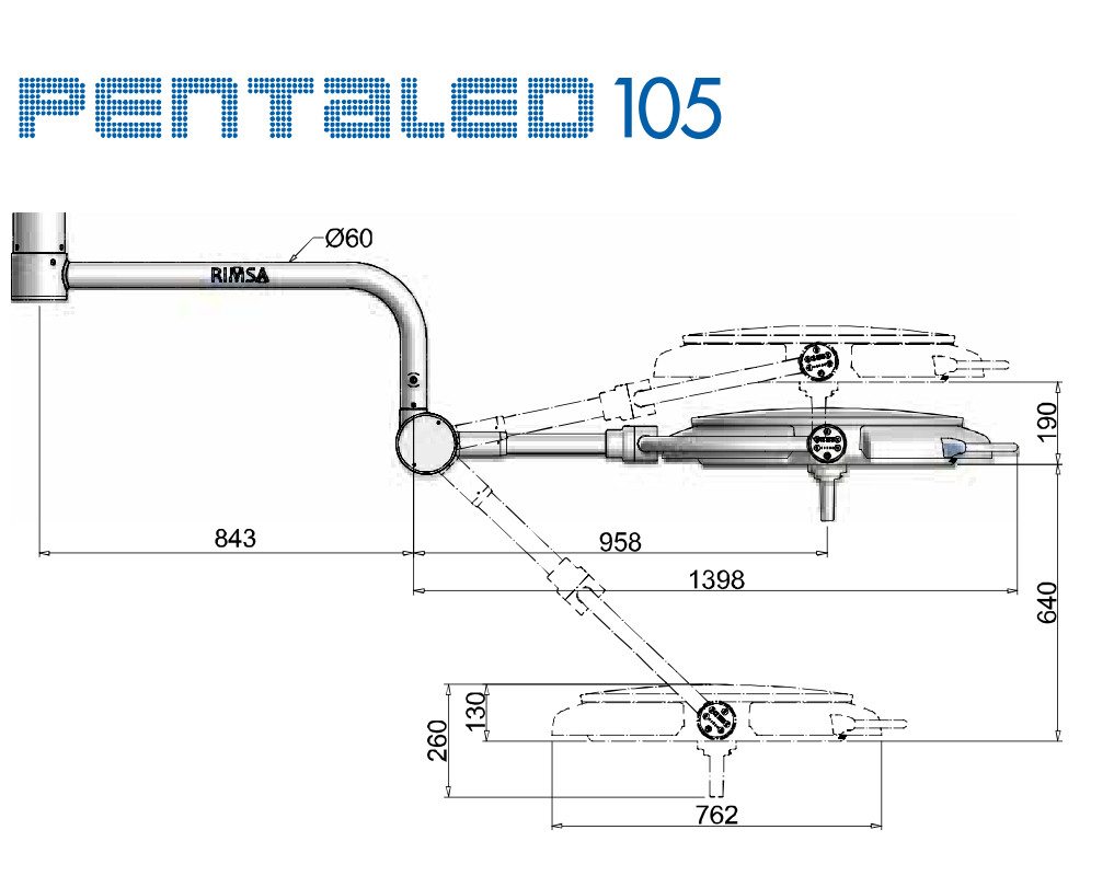 PENTALED 105 jest najbardziej zaawansowaną lampą serii E o najwyższej jakości. Posiada 81 diod LED, podobnie jak lampa Pentaled 81, podzielonych na 8 modułów i dodatkowo 4 moduły boczne pod 6 diod promieniujących na zewnątrz. Łącznie ma 105 diod zapewniających idealną ostrość widzenia, jeszcze większy stopień bezcieniowości, zwiększoną wgłębność dzięki podwójnej ogniskowej i mnóstwo innych zalet.