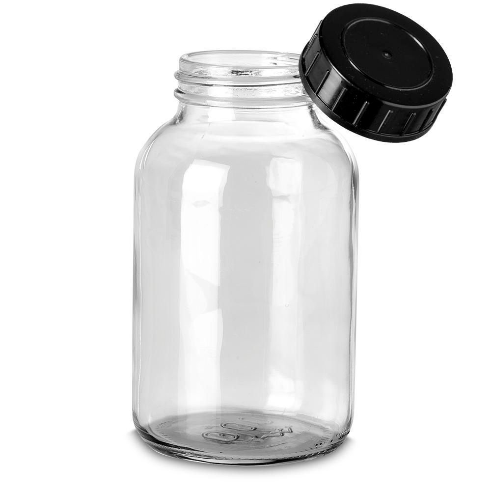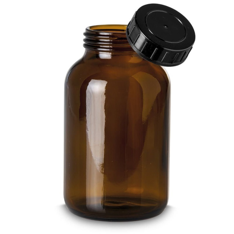 Bezbarwne lub oranżowe szkło z czarną zakrętką PP.