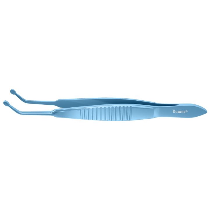 - Pęseta powiekowa ściskająca z atraumatycznymi rolkami