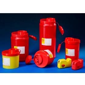 Uniwersalny pojemnik na niebezpieczne odpady medyczne. Posiada szereg otworów o różnych wielkościach i przeznaczeniu. Zatrzaskowe zamknięcie z możliwością wielokrotnego otwierania i po napełnieniu trwałego szczelnego zamknięcia. |
