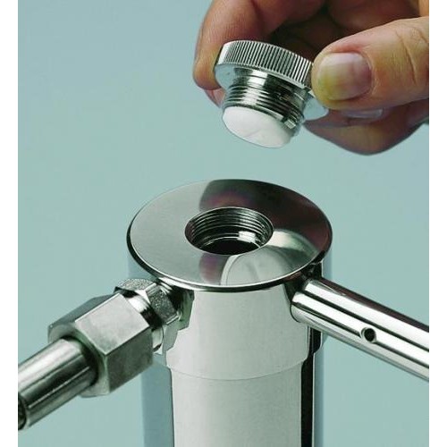 Do filtrów membranowych o śred. 47 mm. Z rezerwuarem pozwalającym na filtrowanie do 200 ml cieczy po podłączeniu do źródła ciśnienia. Mogą być stosowane do filtrowania większych obj. w połączeniu z pojemnikiem ciśnieniowym o poj. 5 L. Komplet zawiera silikonowe uszczelki typu O-ring i złączki do węży o śred. 10 mm na wlocie i wylocie. Do sterylnej