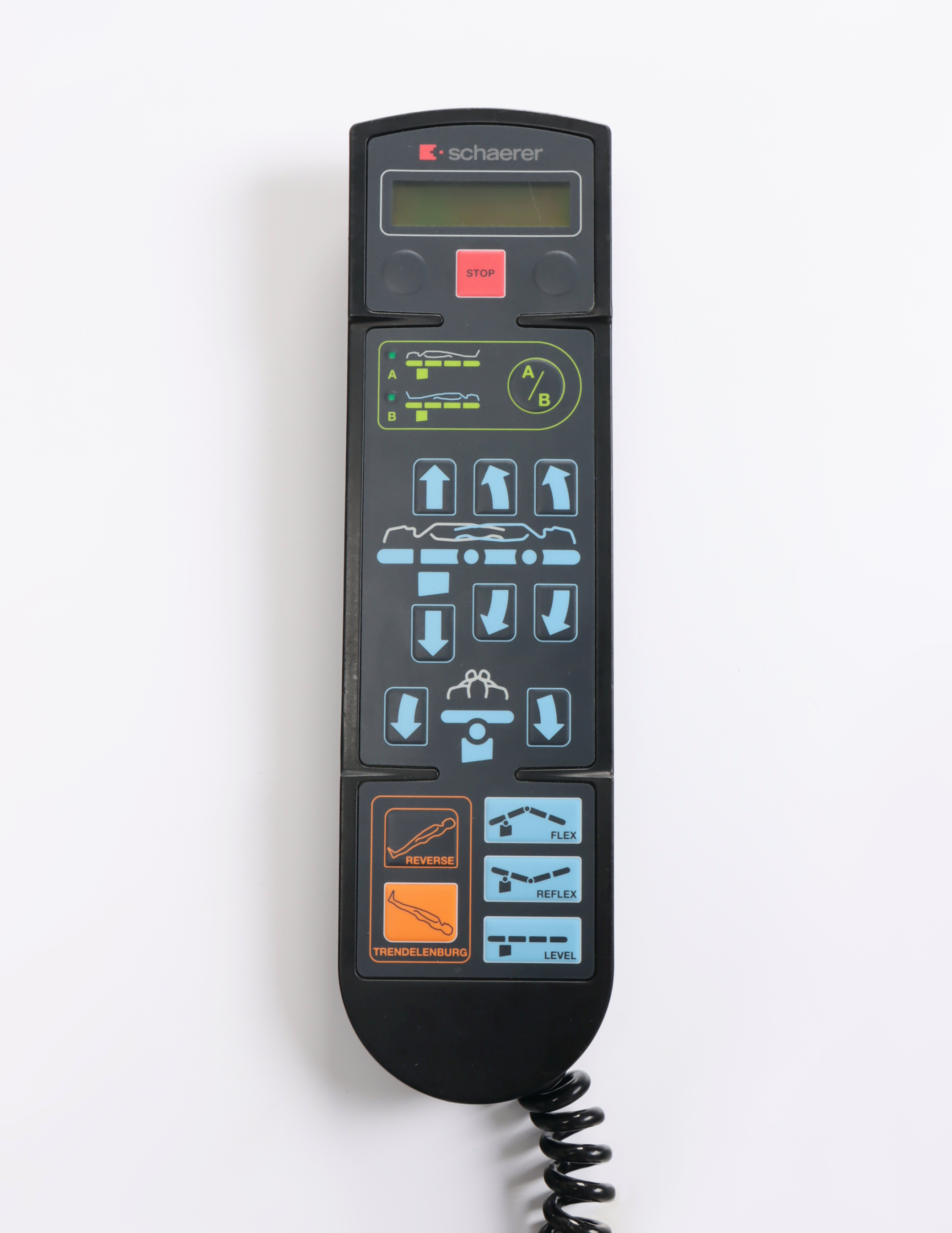 - Płynna, elektryczna regulacja stołu za pomocą pilota lub panelu sterowania umieszczonego na kolumnie: