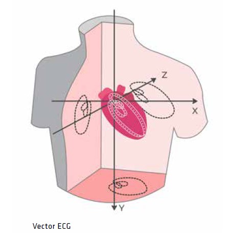 Kardiogram wektorowy śledzi kierunek i wielkość aktywności elektrycznej serca podczas cyklu pracy serca. Dzięki algorytmowi firmy SCHILLER kardiogramy wektorowe i pomiary są obliczane i wyświetlane na podstawie standardowej rejestracji 12-odprowadzeniowej.