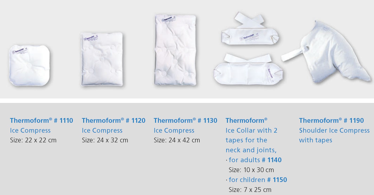 Kompresy lodowe Thermoform® zostały opracowane do stosowania w przypadkach, w których wskazana jest terapia zimnem.
