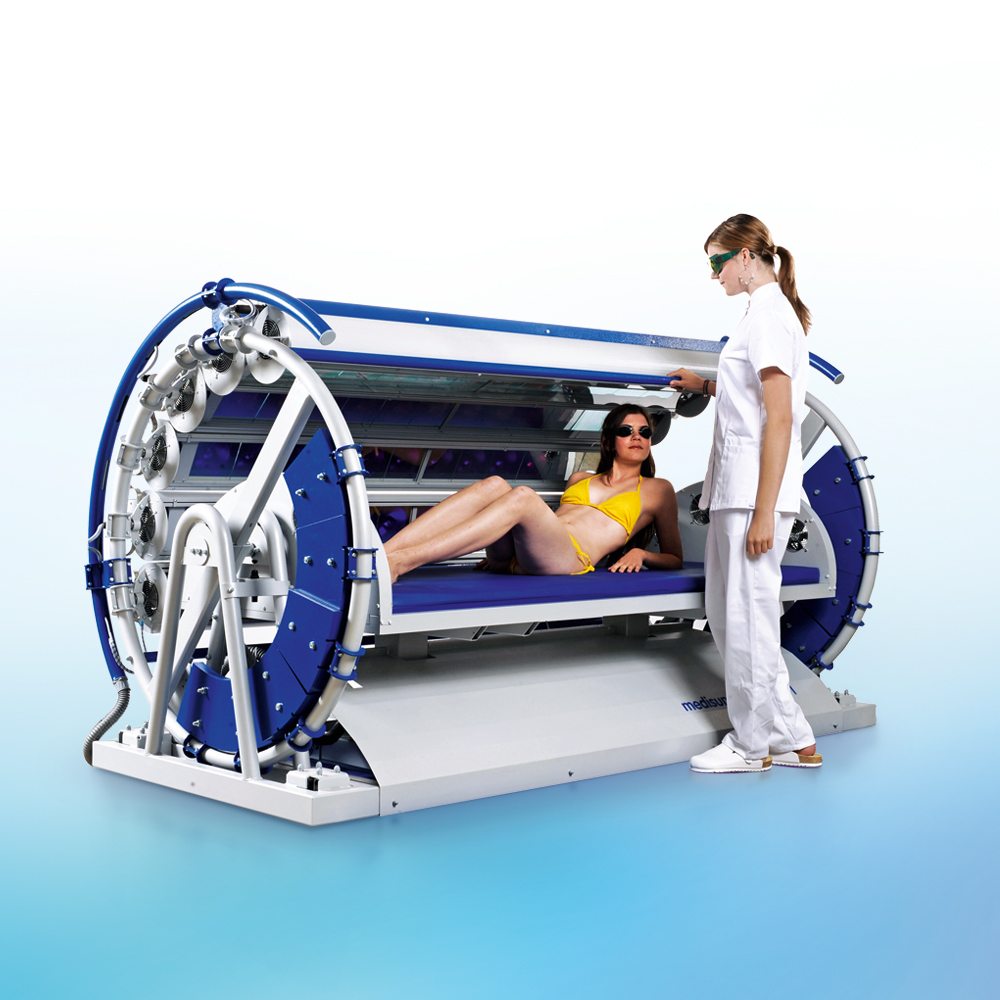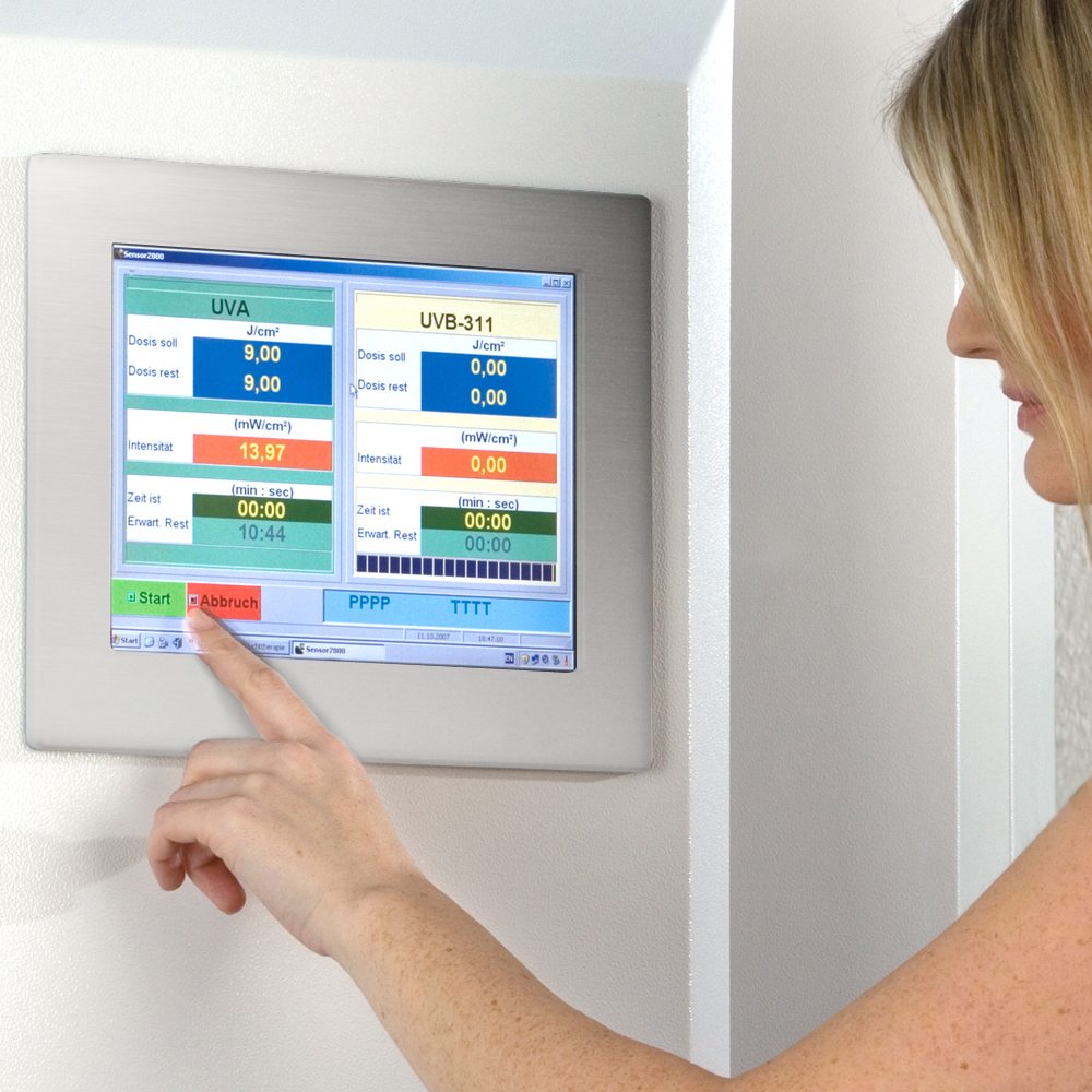 Sterowanie komputerowe medisun® zapewnia precyzyjne dawkowanie w J/cm². Możliwość ustawienia różnego natężenia sześciu indywidualnych pól oświetlenia. Urządzenie możemy również podłączyć do systemu zarządzania terapią medisoft przy pomocy przewodu sieciowego. Sterowanie odbywa się wówczas zdalnie, poprzez komputer PC, znajdujący się np. na biurku recepcji. Personel medyczny może korzystać z zaprogramowanych planów terapii oraz pełnej dokumentacji, zapisywanej w bazie danych. BEZPIECZEŃSTWO I KOMFORT użytkowania na najwyższym poziomie. Zintegrowana historia pacjenta pozwala na dokładny przegląd aktualnej terapii oraz ukończonych procedur. Wygodna funkcja protokołu umożliwia wydruk protokołów terapii. Połączenie lamp ksenonowych UV i wysokiej jakości filtrów świecowych pozwala na uzyskanie selektywnego spektrum światła, pomiędzy 340 i 460nm, co zapewnia najwyższą skuteczność zabiegową. Typowy czas ekspozycji wynosi od 10 do 30 minut.