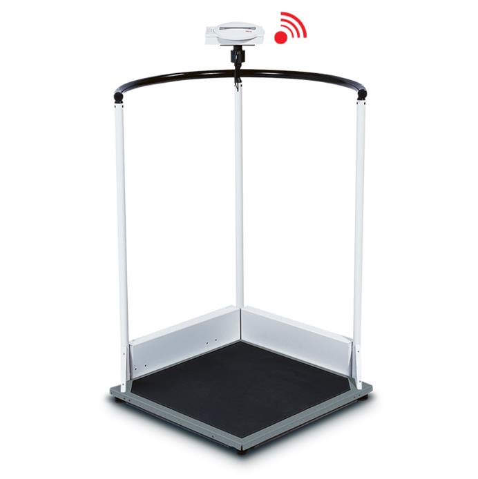 Antypoślizgowa platforma o wysokości 45 mm ułatwia wchodzenie na wagę – nawet dla osób starszych i pacjentów z oddziałów ortopedii. Dodatkowa zaleta: Na przestronnej powierzchni ważenia można łatwo ustawić krzesło, które umożliwia ważenie w pozycji siedzącej. Ciężar krzesła może zostać uprzednio zapisany za pomocą funkcji Pre-TARA i odjęty od aktualnie mierzonej wagi ciała pacjenta.