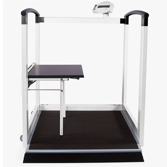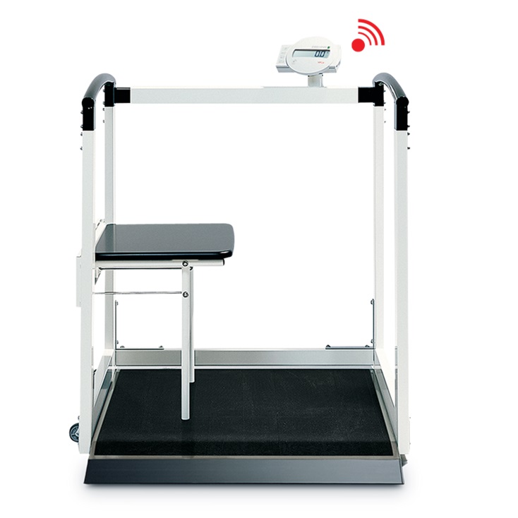 Stabilna poręcz zapewnia oparcie dla stojącego pacjenta, składane siedzisko pozwala na wygodne przyjęcie pozycji siedzącej, natomiast duża platforma (80 x 84 cm) świetnie nadaje się dla pacjentów poruszających się na wózkach inwalidzkich. Zastosowanie funkcji Pre-TARA pozwala w trakcie ważenia pacjenta odjąć masę wózka inwalidzkiego lub chodzika. Pacjentom zapewniono łatwy dostęp do platformy ważącej i bezpieczeństwo, ponieważ waga wyposażona została w ogranicznik na przednie koła wózka inwalidzkiego. Ponadto waga seca 685 wyposażona została w nową technologię seca 360° wireless, która umożliwia bezprzewodowy transfer wszystkich pomiarów do bezprzewodowej drukarki seca lub na oprogramowanie sceca zainstalowane na komputerze PC. Dodatkowe atuty: czytelny wyświetlacz obrotowy można odwracać w stronę pacjenta lub opiekuna, praktyczna funkcja HOLD pokazuje wynik pomiaru masy ciała również po opuszczeniu przez pacjenta platformy wagowej, funkcja tłumienia zapewnia precyzję pomiaru, antypoślizgowa gumowa powłoka i poręcz chronią pacjenta przed upadkiem, a zintegrowane z urządzeniem rolki transportowe ułatwiają jego przemieszczanie.
