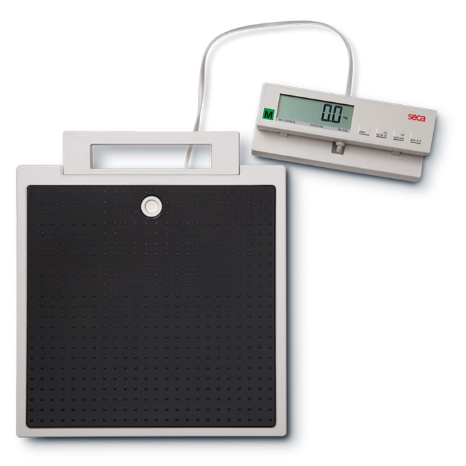 Wyświetlacz i podstawa wagi seca 899 są połączone ze sobą przewodem o długości 2 m. Zaleta takiego rozwiązania: wyświetlacz może być ustawiony w dowolnym miejscu z dala od wagi do wygodnego odczytu wyników z biurka lub na wysokości wzroku ze ściany. Tak samo komfortowe jest ważenie, gdyż nawet osoby z problemami w poruszaniu się bez problemu wejdą na nisko osadzoną platformę, której pokrycie daje się łatwo oczyścić wszelkimi ogólnodostępnymi środkami do czyszczenia.