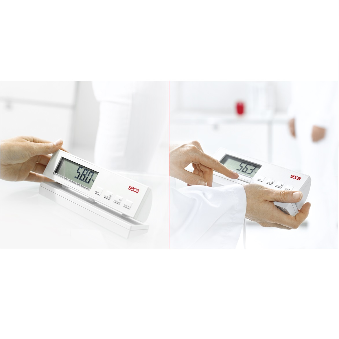 Seca 899 wyposażona jest we wszystkie funkcje do częstego użytku: funkcja BMI pomaga w określeniu stanu odżywienia, funkcja HOLD pozwala na zatrzymanie wyniku pomiaru na wyświetlaczu, a funkcja TARA wytarowuje np. masę ciała dzieci trzymanych na rękach dorosłych. Odczyt wyników jest niezwykle wygodny dzięki możliwości dowolnego ustawienia kąta nachylenia panela z wyświetlaczem.