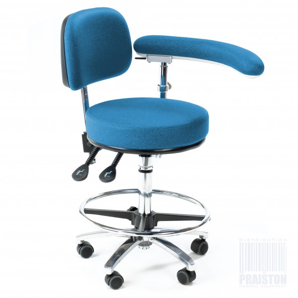 - MC6161 - Zakres regulacji wysokości 54 – 74 cm, Krzesło wyposażone w oparcie i ramię, Krzesło wyposażone jest w okrągłą podstawę pod stopy,