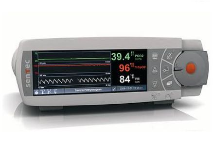 Przezskórny kapnograf i pulsoksymetr do nieinwazyjnego i ciągłego monitorowania przezskórnego SpO2 i pCO2 we krwi. SenTec w sposób ciągły mierzy przezskórnie stężenie tlenu pO2 i dwutlenku węgla pCO2 we krwi oraz puls PR. Umożliwia to podjęcie natychmiastowej reakcji, co w efekcie może zapobiec niewydolności i uszkodzeniom narządów. Do zastosowania w medycynie zaburzeń oddychania podczas snu, monitorowania procesów i skuteczności wentylacji pacjentów w ER, OIOM, w domu oraz neonatologii.