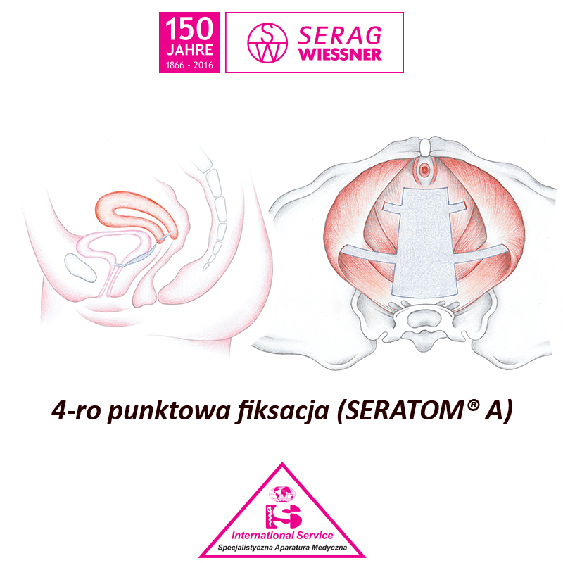 System SERATOM® oferuje różne siatki do rekonstrukcji dna miednicy, wraz z odpowiednimi narzędziami chirurgicznymi. Warianty systemu umożliwiają optymalną naprawę obniżenia narządów miednicy mniejszej, zarówno w kompartymencie przednim jak i tylnym. Unikalna makroporowa siatka zapewnia optymalne zawieszenie macicy lub sklepienia pochwy. Wszczepienie siatki SERATOM® likwiduje obniżenie i wypadanie, a jednocześnie stabilizując tkanki utrzymuje ich prawidłową statykę. Podtrzymujący implant jest przymocowany do stabilnych struktur w miednicy za pomocą indywidualnie przeprowadzonych i napiętych taśm. Powoduje to anatomicznie prawidłowe, trwałe odbudowanie dna miednicy – co jest ważnym czynnikiem przywrócenia prawidłowej funkcji pęcherza moczowego oraz jelit. Główne włókna składają się z włókien dwuskładnikowych (monofilament powleczony wchłanialną warstwą glikolidu i e-kaprolaktonu). Procedura produkcyjna pozwala na uzyskanie lekkiej, miękkiej siatki o dużych porach. Przy zminimalizowanej ilości obecnego ciała obcego, makroporowa struktura pozwala na dobre przerastanie siatki tkankami. Wszczepiona siatka wykazuje się stałymi właściwościami mechanicznymi in vivo w długim okresie obserwacji. Podstawa siatki i taśmy mocujące produkowane są w sposób jednoczęściowy dzięki czemu kompresja implantu przez tkanki pacjentki rozkłada się równomiernie. W przypadku napięcia, siatka zachowuje swoją trwałość na całej swojej powierzchni. System SERATOM® pozwala na wykonanie małoinwazyjnej, beznapięciowej, korekty chirurgicznej z dostępu przezpochwowego. Znajduje on zastosowanie u pacjentek ze wskazaniami do korekty chirurgicznej cystocoele (uchyłka pochwowego pęcherza moczowego). Jego zastosowanie nie zależy od obecności i statyki szyjki macicy, jak również system znajduje zastosowanie w operacjach pochwowych z powodu obniżenia lub wypadania narządu rodnego jako jeden z elementów korekty.