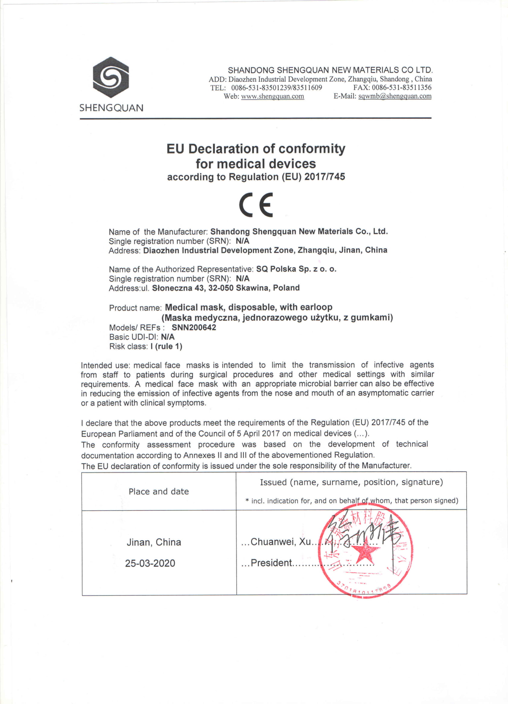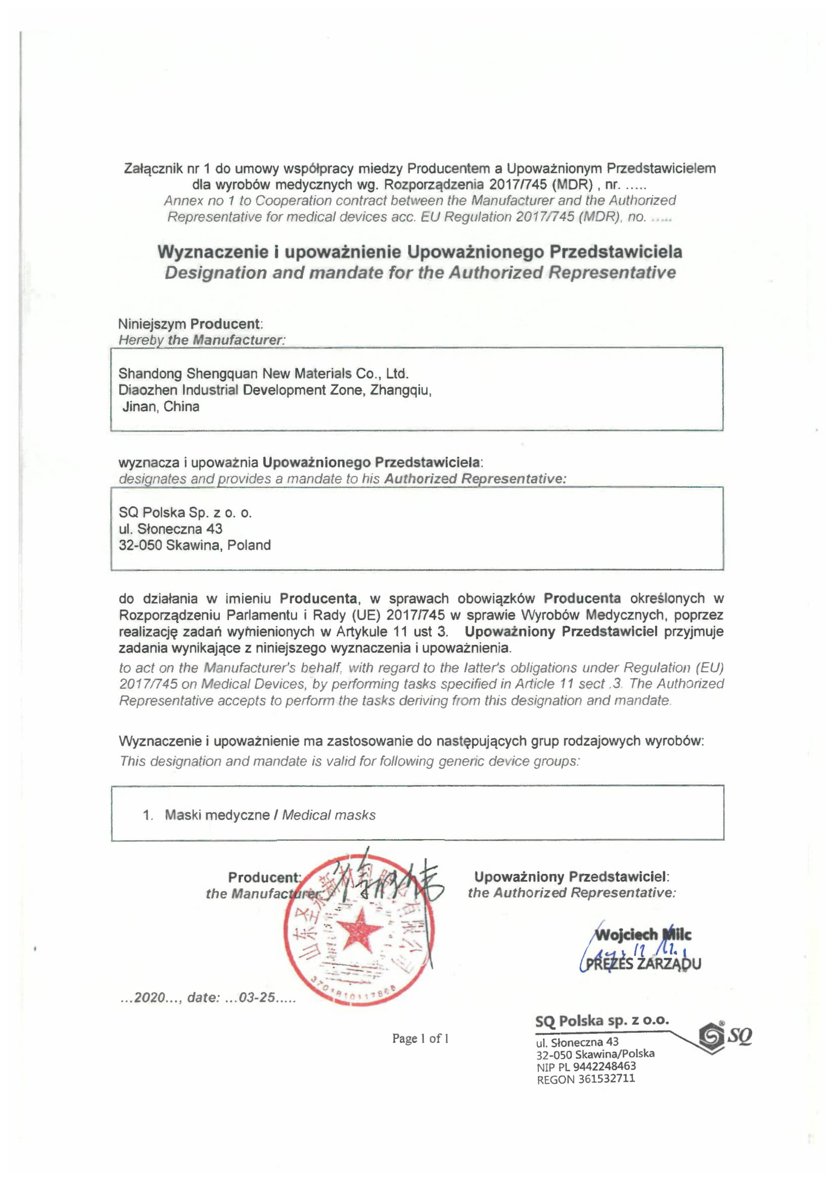 Deklaracja zgodności CE dla wyrobu medycznego klasy I