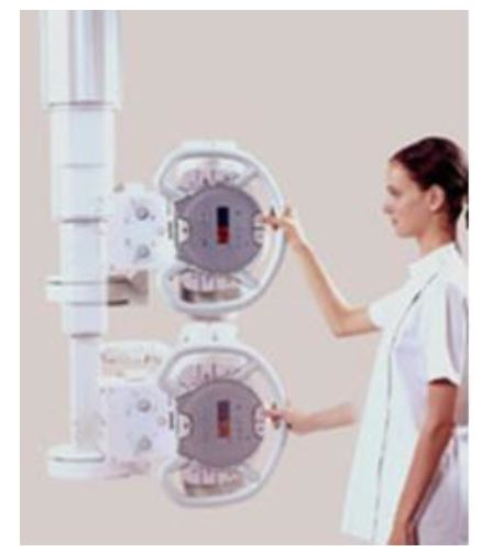 Zawieszenie sufitowe lampy rtg umożliwiające przesuw lampy wzdłuż całej długości stołu.