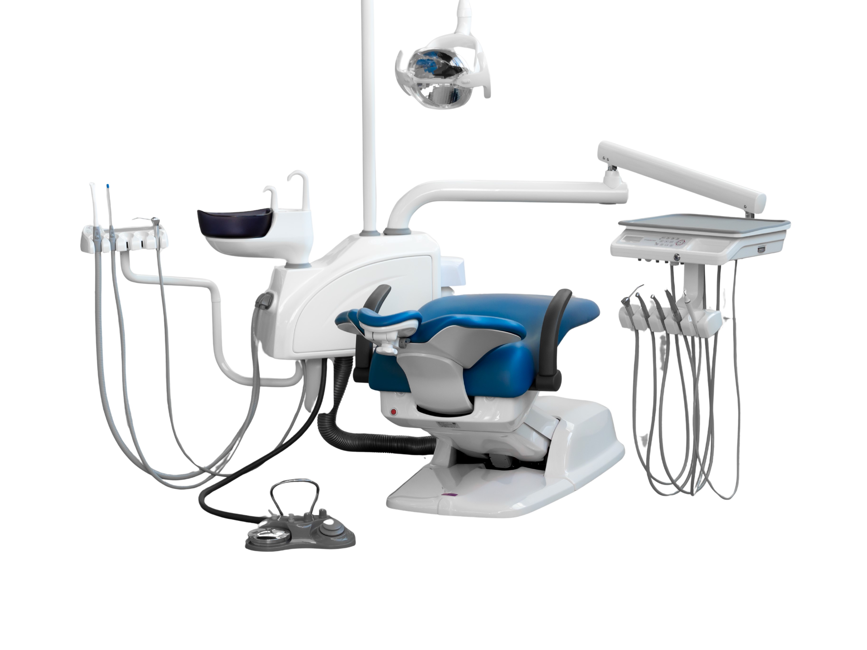 Simple and Smart – Model One to unit stomatologiczny stworzony z myślą o gabinetach potrzebujących prostego, funkcjonalnego i ekonomicznego rozwiązania. Urządzenie łączy niezawodne podstawowe funkcje z ergonomiczną konstrukcją, zapewniając wysoką wydajność i komfort pracy przy optymalnych kosztach. Filozofia Modelu One to prostota – mniej elektroniki, mniej problemów – co przekłada się na łatwy montaż, intuicyjną obsługę i wysoką niezawodność. Fotel zaprojektowano tak, aby pacjent czuł się pewnie i wygodnie przez cały zabieg, a ergonomia pozwala lekarzowi pracować w swobodnej pozycji, także od tyłu, w ustawieniu na godzinie 12. Smukłe metalowe oparcie poprawia dostęp do pola zabiegowego i komfort pacjenta. Konsola lekarza może być skonfigurowana z prowadzeniem rękawów od góry lub od dołu, w dowolnej kolejności i z dowolnym zestawem funkcji – w tym mikrosilnikami elektrycznymi TKD lub Bien-Air, rękawami turbinowymi, skalerem (również w wersji Endo), lampą polimeryzacyjną i strzykawko–dmuchawką. Komponenty Dürr Dental zapewniają długowieczność i bezawaryjność, a elastyczne warianty podłączeń umożliwiają montaż unitu w niemal każdym gabinecie: do pompy mokrej lub suchej, z zaworami selektywnymi i spluwaczkowymi wymagającymi tylko jednego odpływu, w klasycznym układzie z oddzielnymi odpływami lub bez użycia pompy w systemie Air-Venturi lub Air-Air.