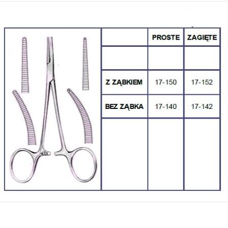 Kleszczyki Halsted-Mosquito wykonane ze stali nierdzewnej, proste lub zagięte.