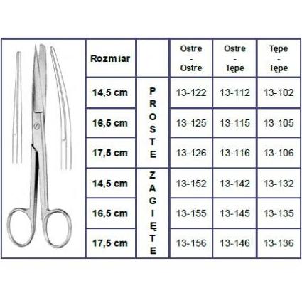 Typ (Standard/operacyjne/Castrovijo/Cuticle/Iris/Stevens/Joseph/Lister/Esmarch/Mayo/Mayo-Stille/Metzenbaum/Nelson-Metzenbaum/Potts-Smith/Sims/inny):