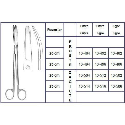 Nożyczki wykonane są ze stali nierdzewnej proste lub zagięte.
