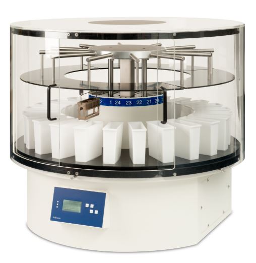 Barwiarkę karuzlową MSM zaprojektowano tak, aby spełniała podstawowe wymagania rutynowego barwienia w laboratoriach histologicznych i cytologicznych. Aparat jest wyposażony w 24 stanowiska inkubacyjne, każde o pojemności 400 ml. Zintegrowana bateria zapewnia najwyższe bezpieczeństwo procesu nawet w środowiskach z częstymi awariami zasilania. Niebezpieczne opary są skutecznie eliminowane przez system usuwania oparów, zwiększając w ten sposób bezpieczeństwo użytkowników.