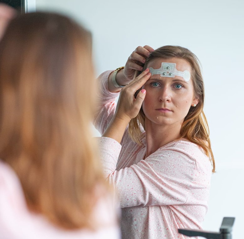 Urządzenie składa się z czujnika i elektrod czołowych na pasku oraz jednej elektrody usznej. Użytkownik jest w stanie samodzielnie przykleić elektrody postępując zgodnie z instrukcją nagraną na dołączonym tablecie i dokonać biokalibracji. Obydwa systemy niezawodnie rejestrują EEG (3), EOG (2), EMG (1), impedancję, oświetlenie pomieszczenia, aktywność, pozycję i dźwięk w celu wykrycia chrapania.