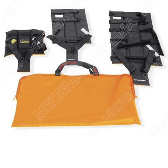 Szyny wykonano z PCW (PVC) i nylonu; zapięcia oznakowano różnokolorowymi rzepami Velcro®, aby ułatwić stosowanie.
