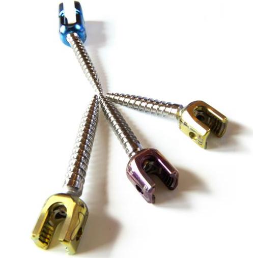o różnych średnicach i długościach. Stożkowy początek kostnej części gwintowanej (na długości min. 1/3 długości gwintu śruby) zapewnia bardzo łatwe wprowadzanie śruby w nasady trzonów. Śruba nie przebija ścian nasad lecz nadaje sobie właściwy kierunek wprowadzania dzięki funkcji samocentrowania. Umożliwia to skrócenie procedury oraz zmniejszenie ilośćekspozycji RTG. Łączenie śrub odbywa się poprzez pręt o średnicy 5,4mm. Mniejsza średnica pręta gwarantuje bardzo niski profil układu stabilizującego co ma szczególne znaczenie w instrumentacji odcinka piersiowego. Rozwiązanie zapewnia optymalne połączenie prostoty i szybkości instrumentacji z maksymalną wytrzymałością i odpornością śruby na wyrywanie ze struktur kostnych.Cały system charakteryzuje się dużą kompaktowością i ergonomią użytkowania.
