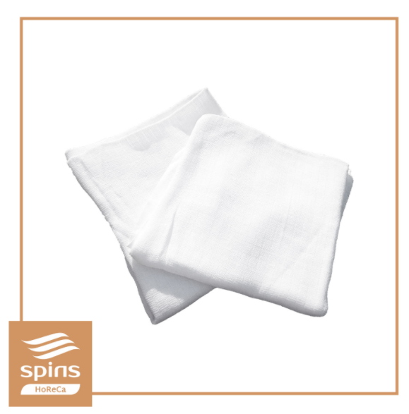 Ścierki są starannie obszyte z każdej strony, co zapobiega ich pruciu się. Dostępne w kolorze białym.