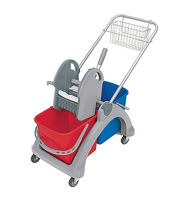 Wózek z tworzywa sztucznego czerwono/niebieski. Wyposażenie standardowe: 1. konstrukcja podwójnego wózka z tworzywa sztucznego kompletna KONS-0025, 2. rączka aluminiowa RURK-0005, 3. 2 x osłona boczna OSLO-0013, 4. prasa do wyciskania szara PRAS-0015, 5. wiadro 25 l czerwone WIAD-0026, 6. wiadro 25 l niebieskie WIAD-0028, 7. koszyk 40479 KOSZ-0009. 1 szt./1 paczka (735x470x500mm). Waga: netto - 9,3 kg, brutto - 10,5 kg. 12 szt./1 paleta (800x1200 mm).