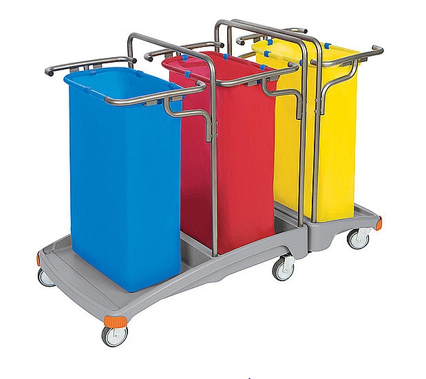 Potrójny wózek na odpady z tworzywa sztucznego. Wyposażenie standardowe: 1. podstawa XL TS PODS-0020, 2. podstawa L TS PODS-0019,