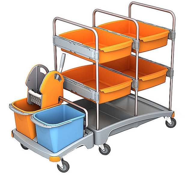 Wyposażenie standardowe: 1. podstawa XL TS PODS-0020, 2. podstawa L TS PODS-0019, 3. 2 x odbojnik nr 1 zestawu TS ODB-0001, 4. 2 x odbojnik nr 2 zestawu TS ODB-0002, 5. rurka - podpora prasy RURK-0033, 6. 3 x rurka – ramka główna XL (970 mm) RURK-0045, 7. 6 x kółko 100 mm z płytką mocującą KOLK-0006, 8. przegroda wiader TS PRZEG-0005, 9. wiadro 20 l TS pomarańczowe WIAD-0038, 10. wiadro 20 l TS niebieskie WIAD-0039, 11. prasa do wyciskania szaro/pomarańczowa PRAS-0026, 12. 6 x listwa prowadząca zestawu TS LIST-0012, 13. 12 x obejma zestawu TS OBEJ-0001, 14. 12 x spinka 1515 szara TS SPIN-0003, 15. 4 x kuweta TS pomarańczowa KUWE-0011, 16. 24 x listwa blokowania TS LIST-0013, 17. blacha - łącznik podstaw nr 1 BLAC-0004, 18. blacha - łącznik podstaw nr 2 BLAC-0005.1 szt./2 paczki (660x470x500mm + 1105x680x370mm). Waga: netto - 32,8 kg, brutto - 36,9 kg. 2 szt./ 1 paleta (800x1200 mm).