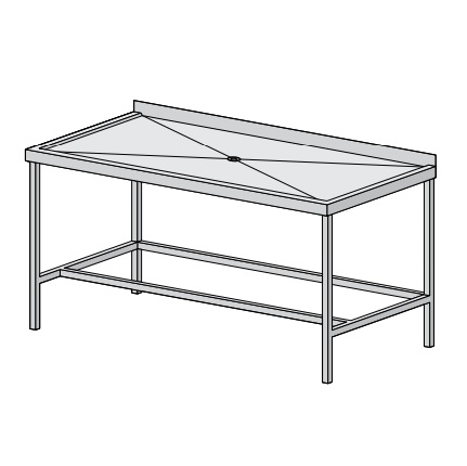 Blat i stelaż stołu wykonane są ze stali kwasoodpornej, co zapewnia mu wieloletnią trwałość, estetyczny wygląd i łatwość utrzymania w czystości. Stopki stołu zapewniają płynną regulację wysokości w zakresie ±1 cm. Blat wyposażony jest w rant od strony ściany (30 mm).