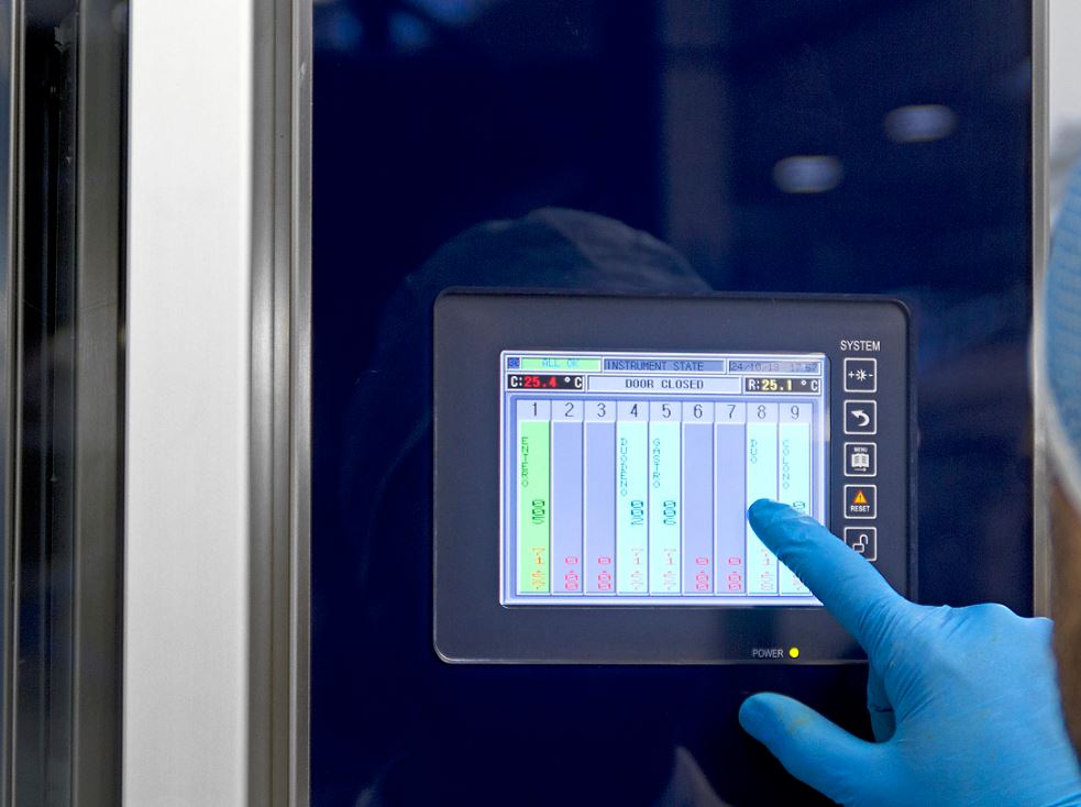 Wyświetlacz na bieżąco pokazuje aktualny status wszystkich przechowywanych instrumentów.