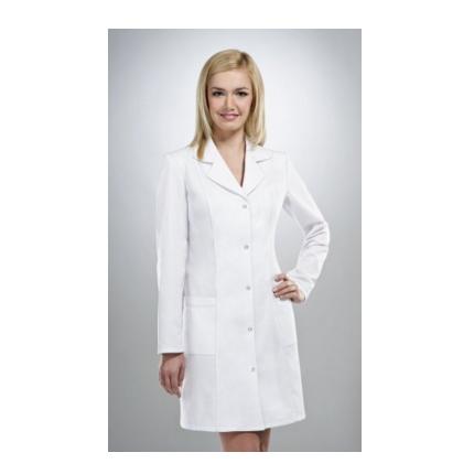 Damski, klasyczny fartuch medyczny. Kołnierz wykończony klasycznie. Wyposażony w dwie kieszenie na biodrach.