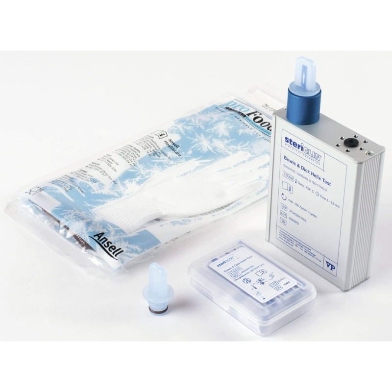 Nasz test stericlin® Bowie-Dick Typu Helix spełnia wymagania normy DIN EN ISO 11140-4 i sprawdza sterylizator pod kątem usuwania powietrza i penetracji pary wodnej. Przyrząd testowy jest wykonany z aluminium i posiada zintegrowaną rurkę (helix) ze sztucznego tworzywa; przyrząd przewidziano na 250 cykli sterylizacji.