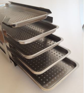 Taca wykonana z wykorzystaniem perforowania, dzięki zastosowaniu sali nierdzewnej jest odporna na korozję. Gwarantowana odporność na wysoką temperaturę. Zastosowanie najlepszej jakości stali nierdzewnej gwarantuje odporność na działanie kwasów, taca dzięki temu może być wykorzystywana wielokrotnie.