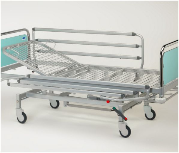 Przechyły Trendelenburga oraz anty-Trendelenburga dokonywane dźwignią umieszczoną pod leżem w sekcji nożnej, przy pomocy sprężyn gazowych. Szczyty łóżka wykonane z rur pokrytych powłoką niklowo-chromową, wypełnione wkładem z płyty tworzywowej, wodoodpornej, dwustronnie laminowanej. Układ jezdny stanowią cztery koła blokowane centralnie, w tym jedno z blokadą kierunkową (opcja) lub indywidualnie (standard).
