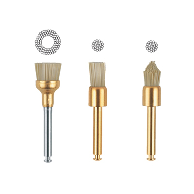 Szczoteczki GOLD do polerowania bez użycia pasty na kątnicę. Szczoteczki do polerowania wypełnień na powierzchni żującej, zwłaszcza bruzd i guzków. Cząstki ścierne z węglika krzemu umożliwiają polerowanie bez użycia pasty. Skutecznie i szybko polerują wypełnienia na wysoki połysk i są łagodne dla tkanek zęba. Nadają się do sterylizacji.