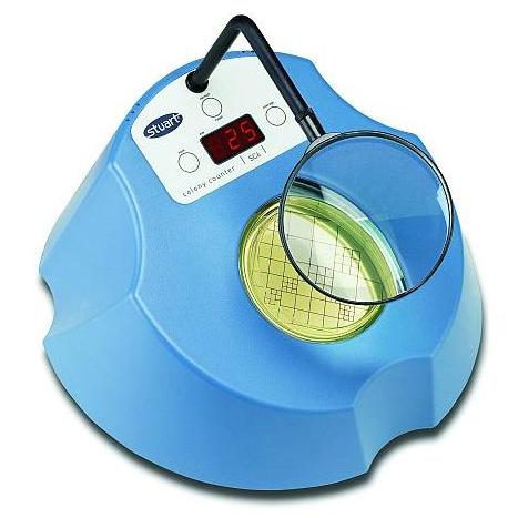 Licznik SC6 firmy Stuart umożliwia szybkie i dokładne pomiary kolonii kultur bakterii. Urządzenie jest proste w obsłudze. Szalkę Petriego umieszcza się w elektronicznym czujniku. Każdorazowe dotknięcie szalki, potwierdzane sygnałem dźwiękowym, rejestrowane jest na cyfrowym wyświetlaczu LED w zakresie 0-999. Dźwięk można wyłączyć. Istnieje możliwość uśrednienia wyników pomiarowych uzyskanych z maksymalnie 99 szalek. Ponadto użytkownik ma do wyboru jasne lub ciemne tło oraz szkło powiększające 1,7x lub 3x. Zastosowanie adaptera pozwala na użycie szalek Petriego w rozmiarach 50-90 mm.
