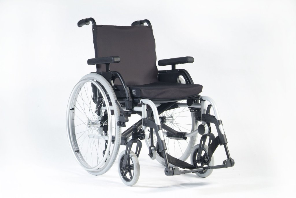 RUBIX. Uniwersalny wózek inwalidzki składany, ręczny. Konstrukcja wykonana z aluminium. Odchylane boczki umożliwiają przemieszczanie się użytkownika. Regulacja napięcia oparcia. Uchwyty do popychania dla asystenta. Regulowana długość podłokietnika. Wyjmowane podnóżki z regulacją wysokości , odchylają się na zewnątrz i do wewnątrz wózka. Platformy podnóżka z regulacją kąta. Szerokość siedziska 38, 40.5,43, 45.5, 48, 52 cm /wersja XL 52-60 cm. Głębokość siedziska 41-46 cm/wersja XL 41-48.5 cm. Wysokość oparcia 41-46 cm. Maksymalna waga pacjenta 125 kg/wersja XL 160 kg. Waga 15,3 kg.
