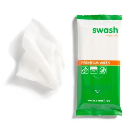 Swash Perineum+ Wipes są wilgotnymi chusteczkami nasączonymi chroniącymi skórę, posiadają bezzapachowy balsam zawierający 3% Dimethicone i hydrożel.