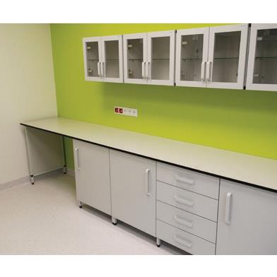Seria mebli ALUMED PLUS opiera się na konstrukcji szafek bazujących na zamkniętych profilach aluminiowych, malowanych proszkowo farbą epoksydowo–poliestrową lub poliestrową.