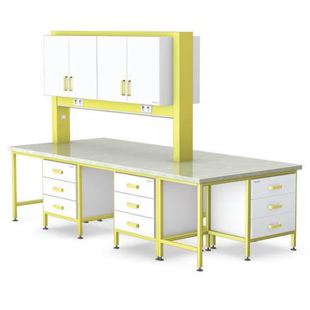 Głównym elementem stanowiska laboratoryjnego jest stół roboczy. Odpowiedni rodzaj blatu i dobór akcesoriów decydują o komforcie pracy. W celu funkcjonalnego wykorzystania przestrzeni wokół blatu wyposażenie stanowią: szafki stojące, szafki wiszące, zestaw szuflad, nadstawki. Blaty laboratoryjne wykonywane są z różnych materiałów, w zależności od właściwości fizycznych i chemicznych, a przede wszystkim od stopnia odporności na substancje chemiczne. Dobór właściwego blatu zależy od specyfiki pracy w laboratorium.