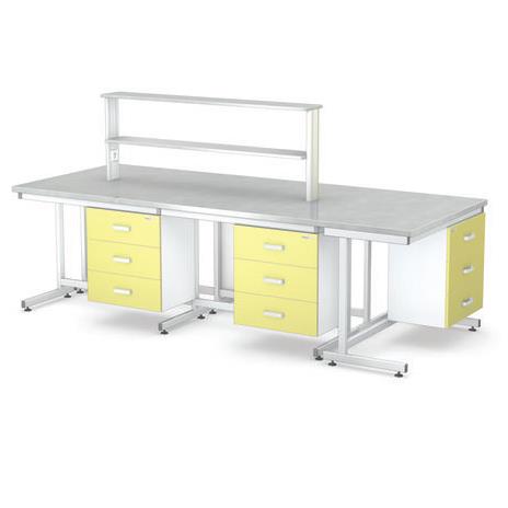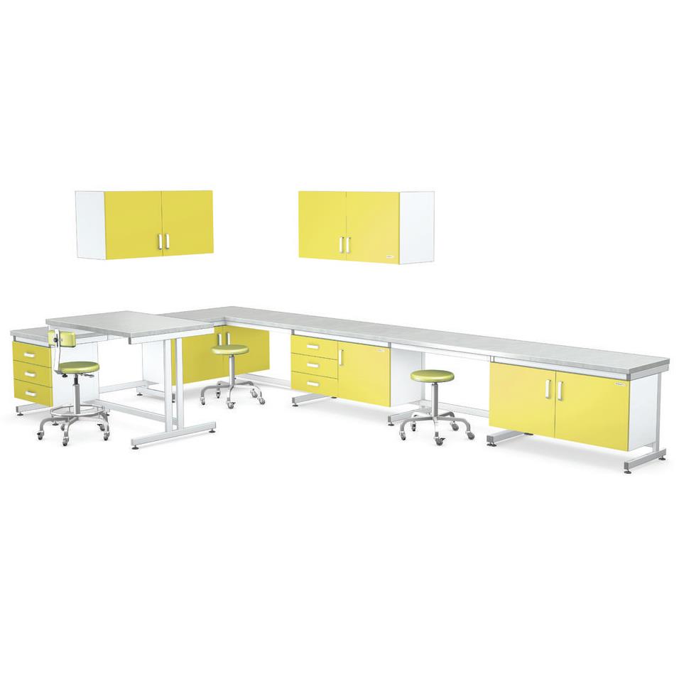 Głównym elementem stanowiska laboratoryjnego jest stół roboczy. Odpowiedni rodzaj blatu i dobór akcesoriów decydują o komforcie pracy. W celu funkcjonalnego wykorzystania przestrzeni wokół blatu wyposażenie stanowią: szafki stojące, szafki wiszące, zestaw szuflad, nadstawki. Blaty laboratoryjne wykonywane są z różnych materiałów, w zależności od właściwości fizycznych i chemicznych, a przede wszystkim od stopnia odporności na substancje chemiczne. Dobór właściwego blatu zależy od specyfiki pracy w laboratorium.