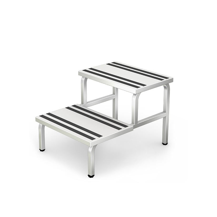 Podest PO wykonano w całości ze stali kwasoodpornej gat. 0H18N9, wyposażony w nóżki z możliwością poziomowania.
