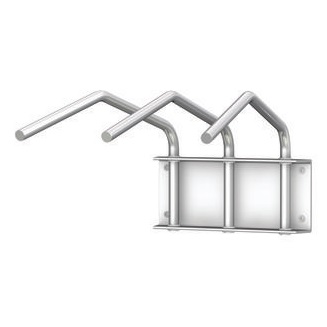 Wieszak wykonano w całości ze stali kwasoodpornej gat. 0H18N9, wyposażono w 5 ramion podstawa wyposażona w koła o średnicy 100 mm, w tym dwa z blokadą.
