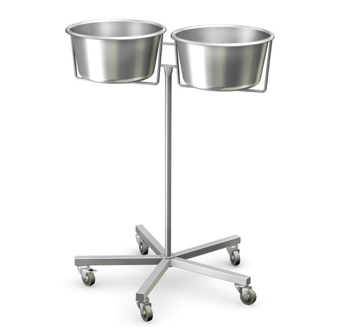 Stojak SMO wykonano w całości ze stali kwasoodpornej gat. 0H18N9. Podstawa pięcioramienna wyposażona w koła o średnicy 50 mm.